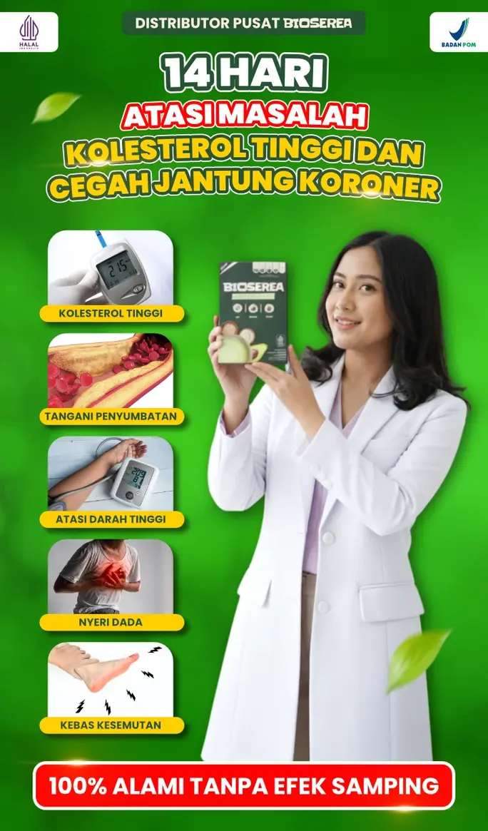 Segera atasi kolesterol sebelum berakhir stroke dan serangan jantung. Dibanding harusPENGOBATAN MEDIS yang memakan biayaPULUHAN JUTA, BIOSEREA bantu atasi dan stabilkan kolesterol sampai tuntas.
