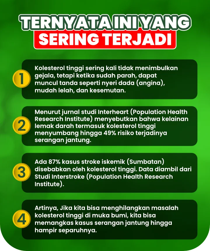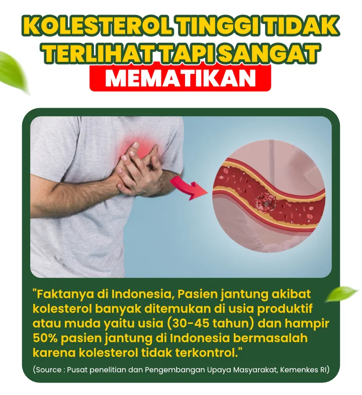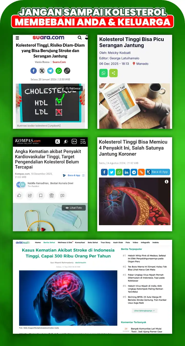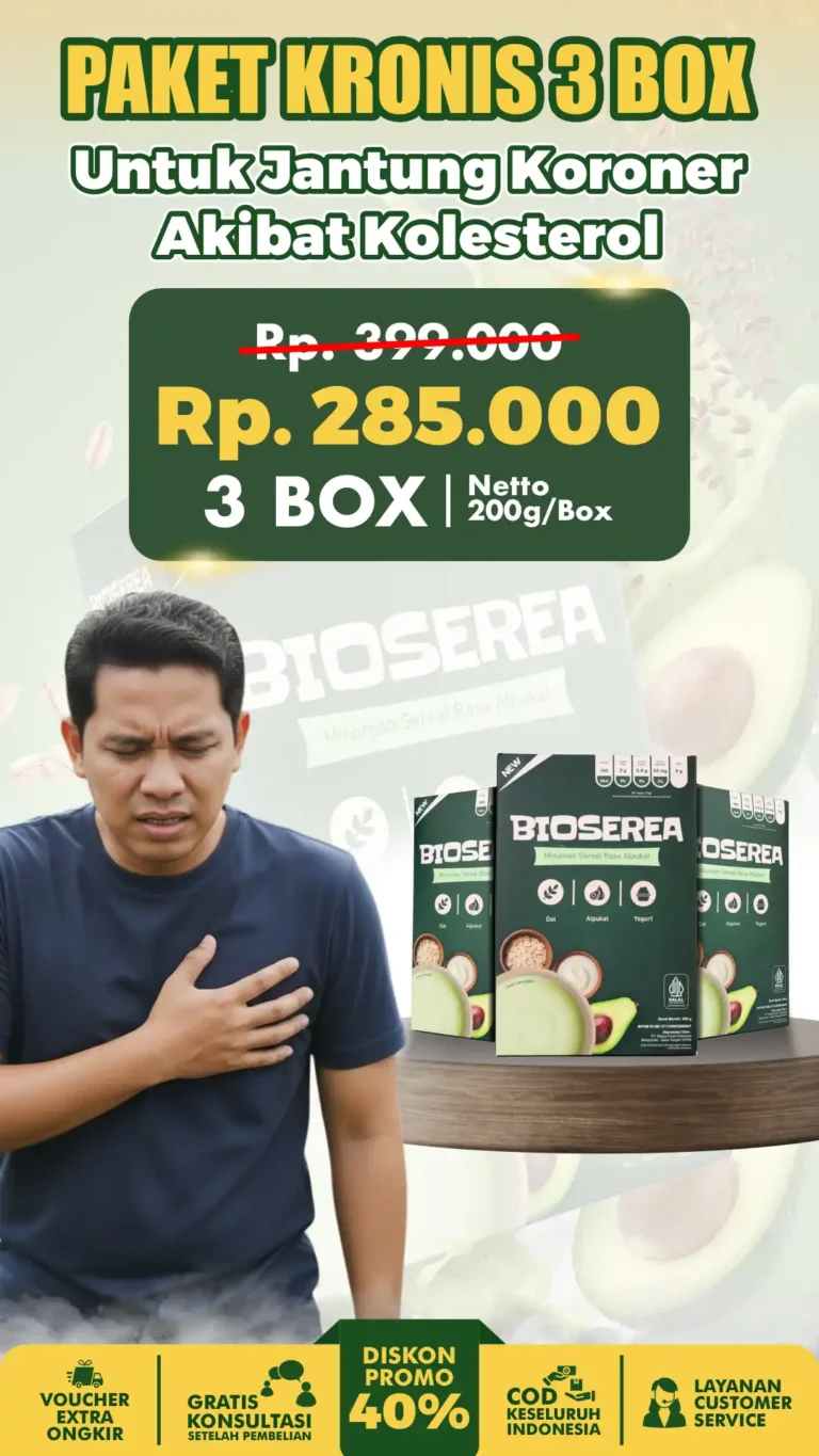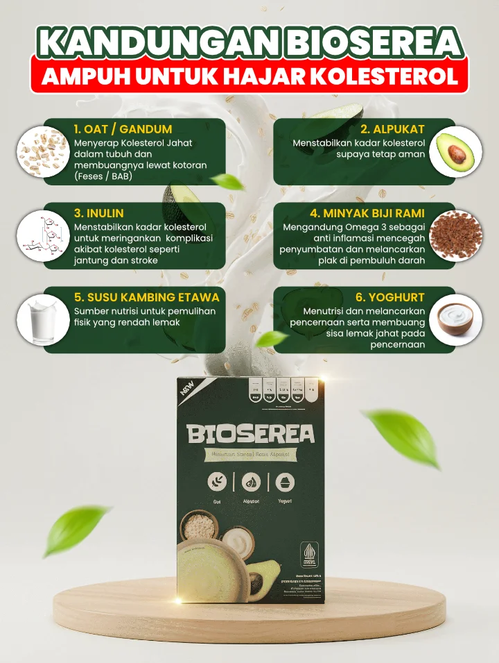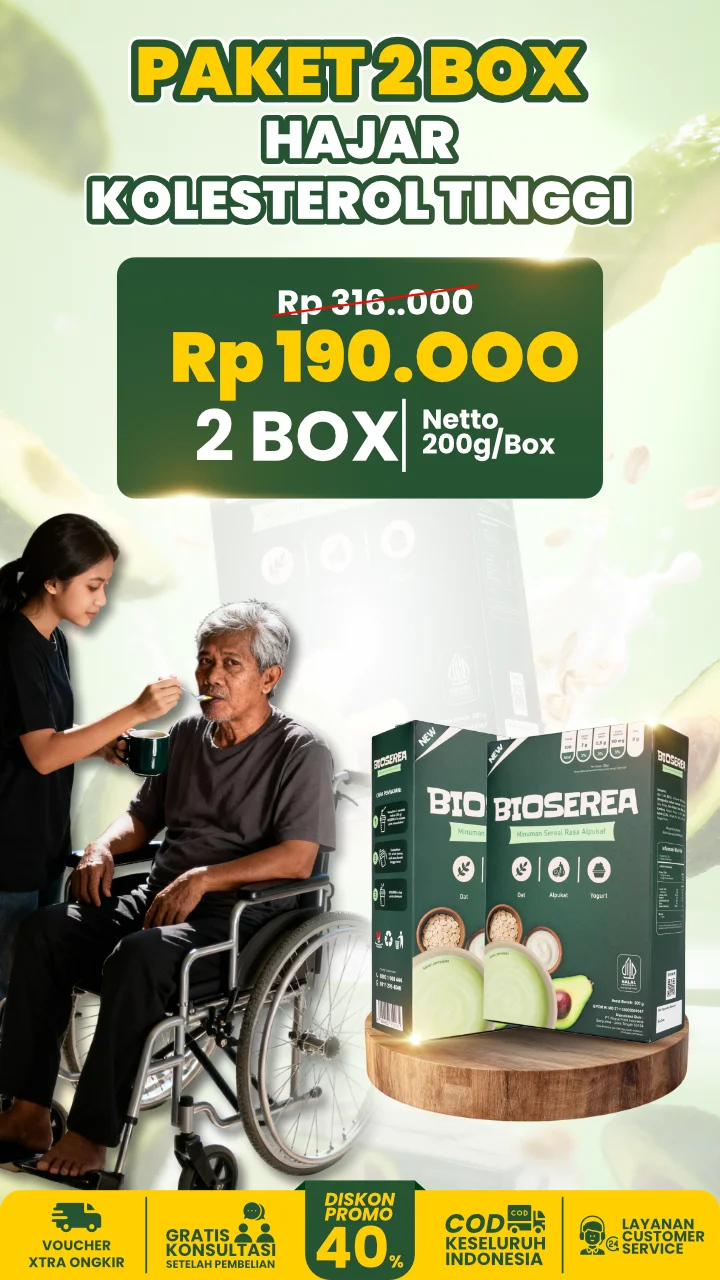 Segera atasi kolesterol sebelum berakhir stroke dan serangan jantung. Dibanding harus pengobatan medis yang memakan biaya puluhan juta, BIOSEREA bantu atasi dan stabilkan kolesterol sampai tuntas.